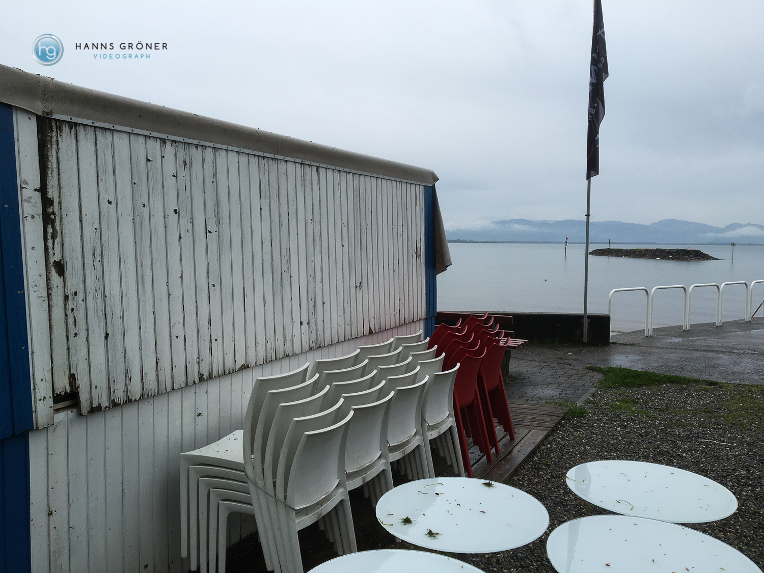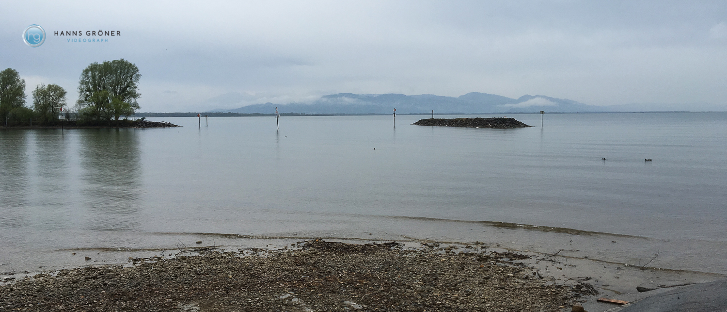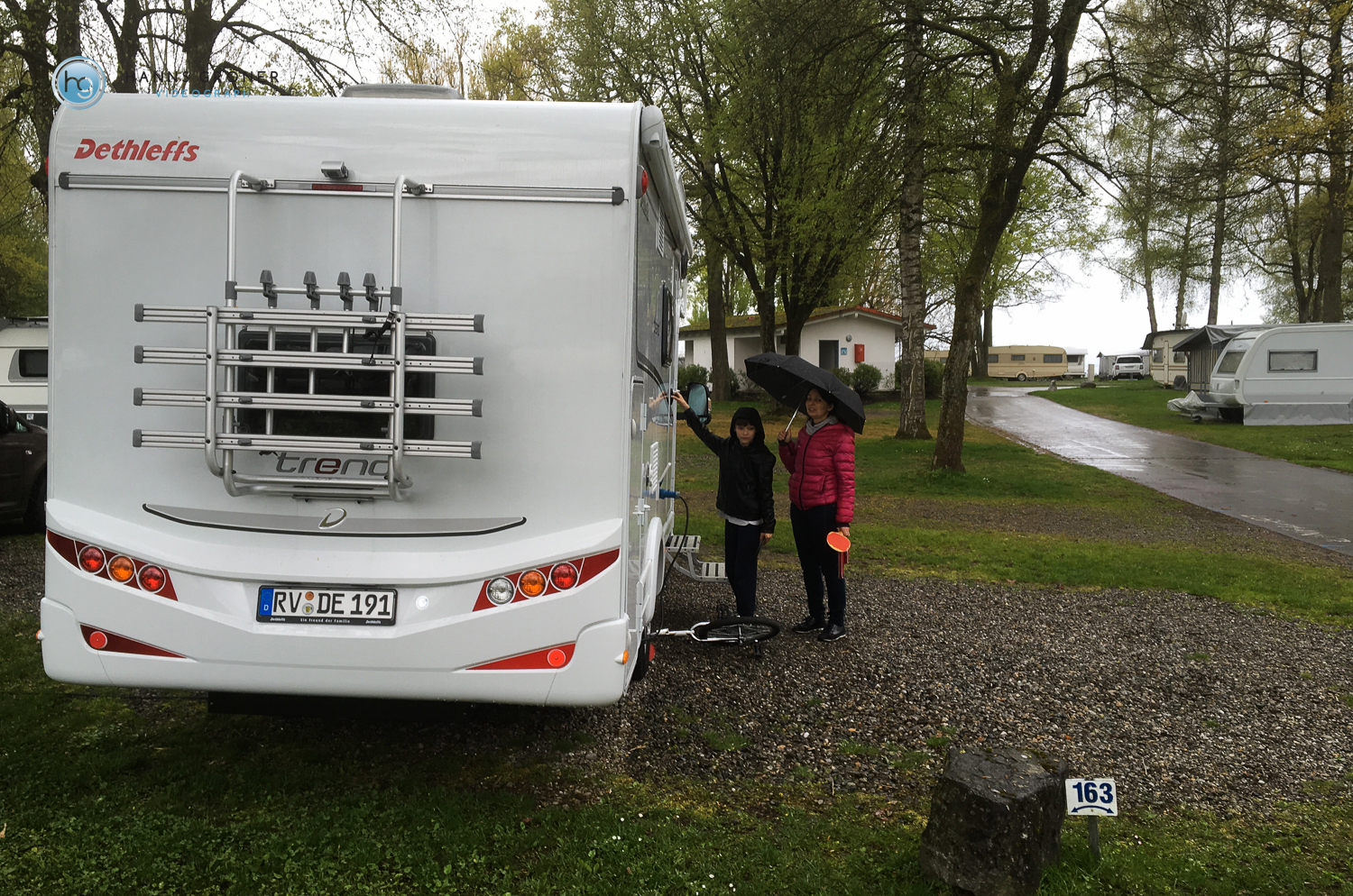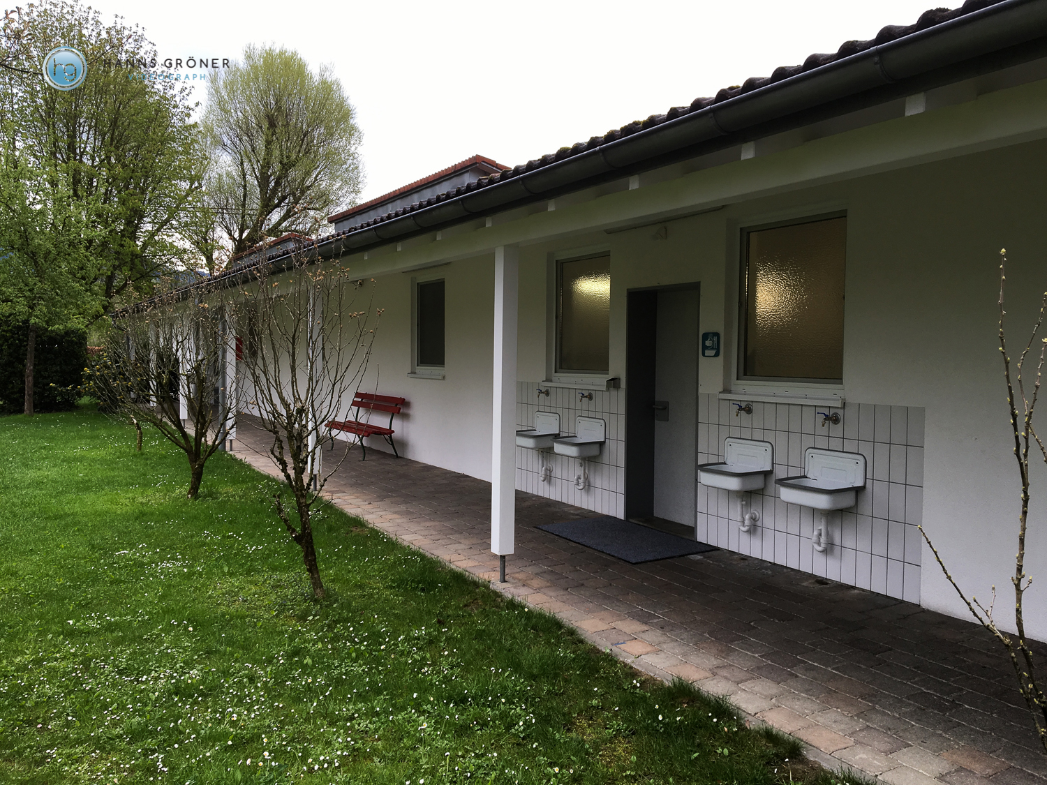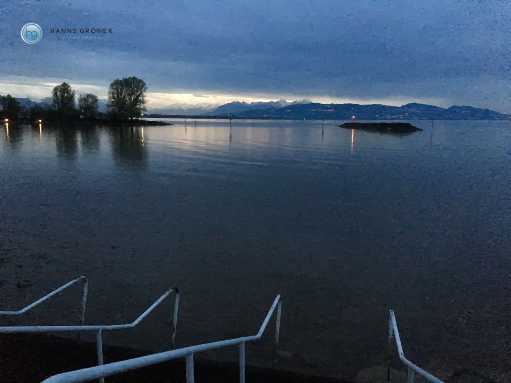 Der Campingplatz ist nur mäßig besucht aber – trotz des nicht gerade einladenden Aprilwetters – bei weitem nicht leer. Alles macht einen sehr gepflegten Eindruck. Der See ist nur ein Paar Schritte entfernt. Vom Steg hat man einen schönen Blick auf die umliegenden Berge, den See und die Stadt Lindau.