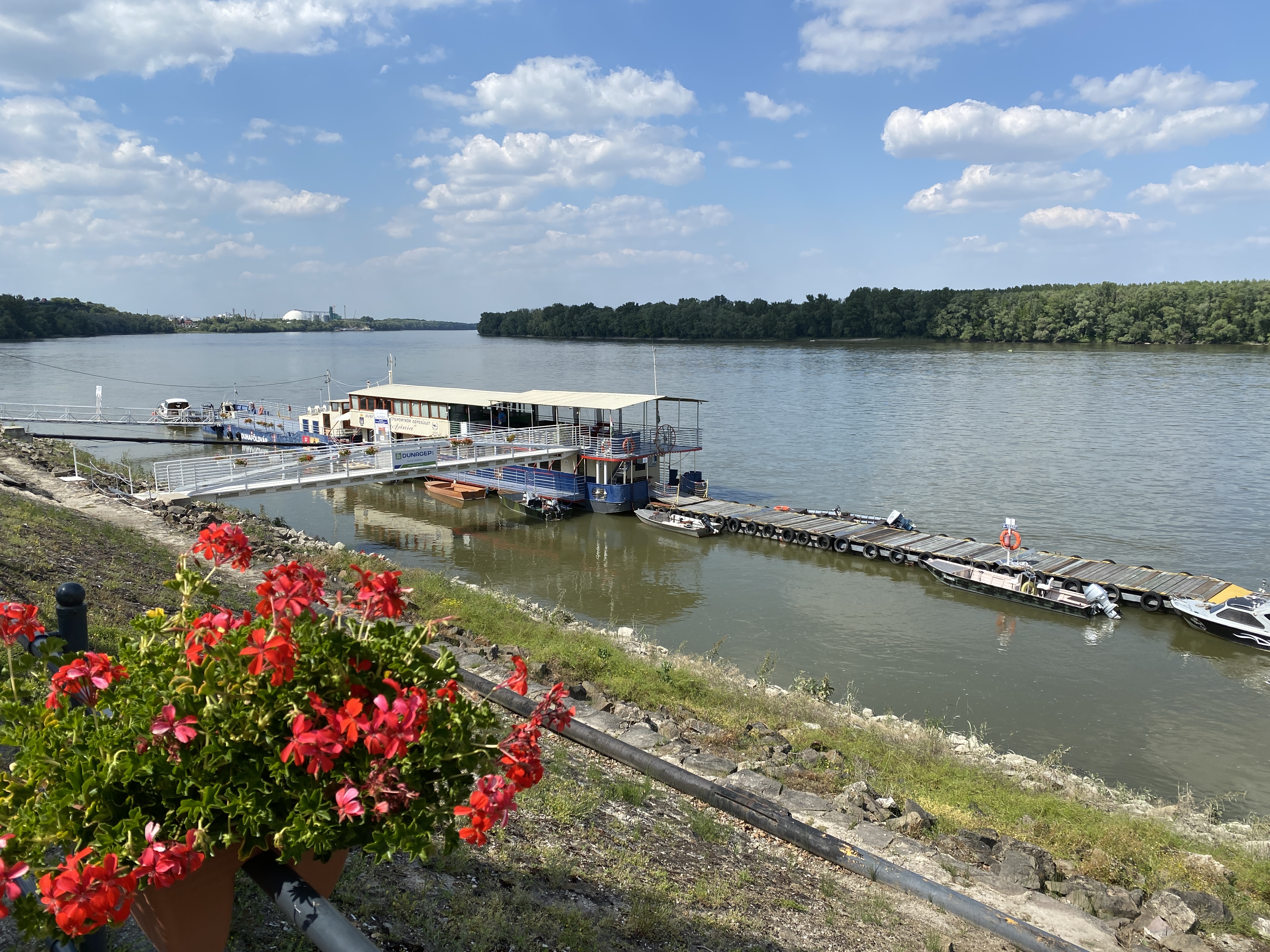 Schön gelegenes, angenehmes Restaurant an der Donau umgeben von Sport- und Freizeiteinrichtungen, leckere Fischsuppe aus Wels 2.970 HUF, Dreher Citrom 550 HUF, Espresso 400 HUF (Stand 2020)