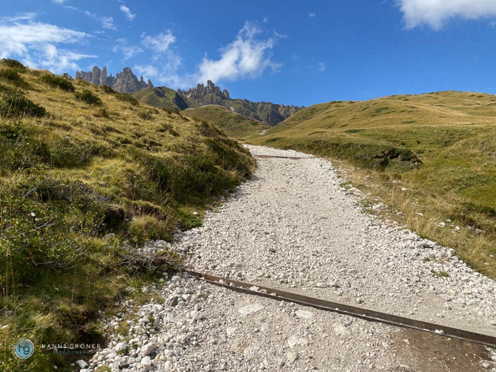 Um diesen Abschnitt zu fahren, muss man natürlich erseinmal hinauf zum Passfahren. Ich bin in Plan de Gralba gestartet und vorbei am Monte Pana und die schöne Zallinger Alm hinauf zur Passhöhe gefahren.