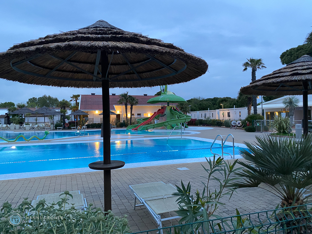 Angenehmer Campingplatz direkt am Meer mit Hallenbad und Wellnessangeboten. Das Camping Village Cavallino ist teilweise auch im Winter geöffnet. WC und Badbereich sehr gut beheizt (April 2024).