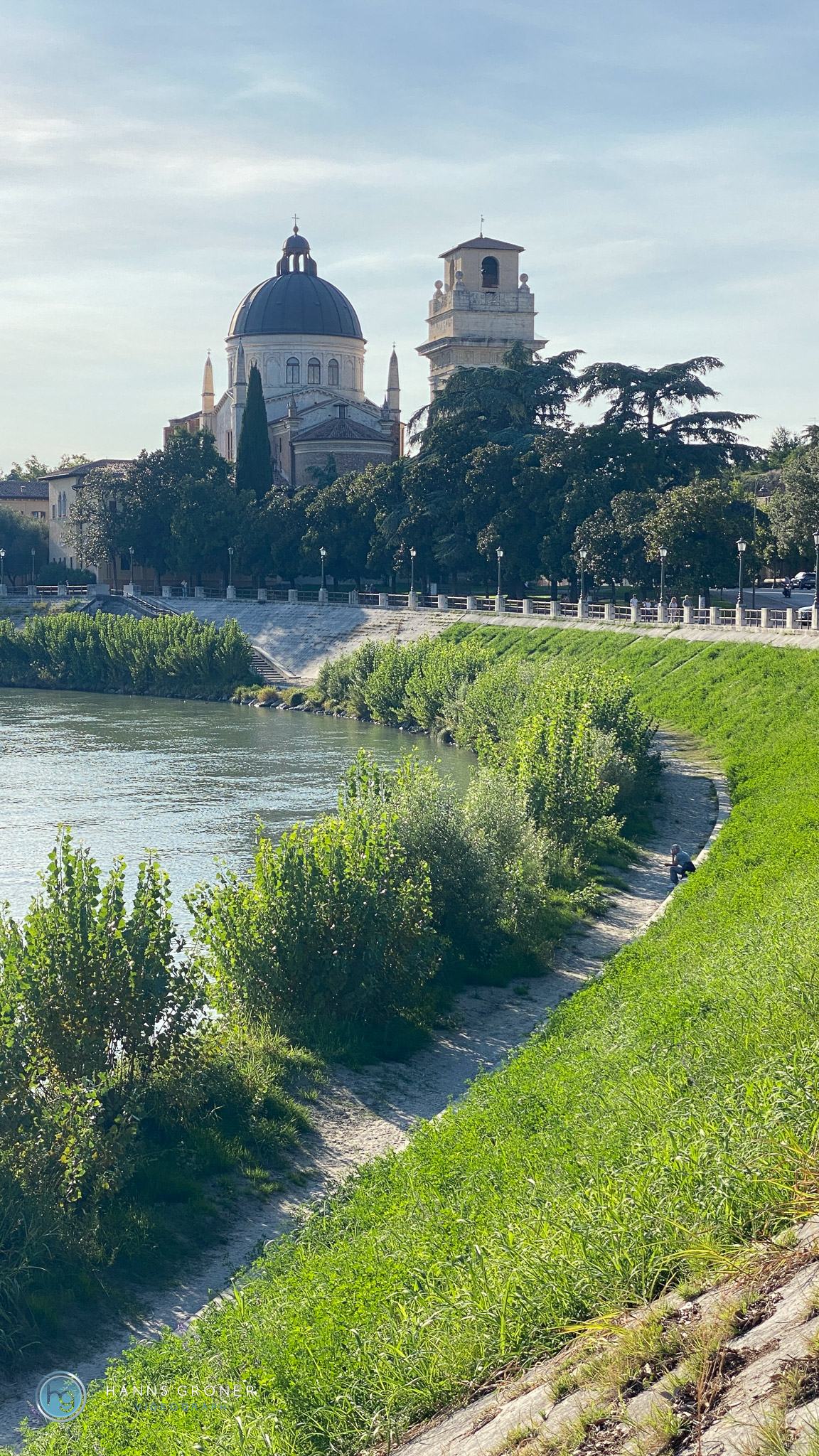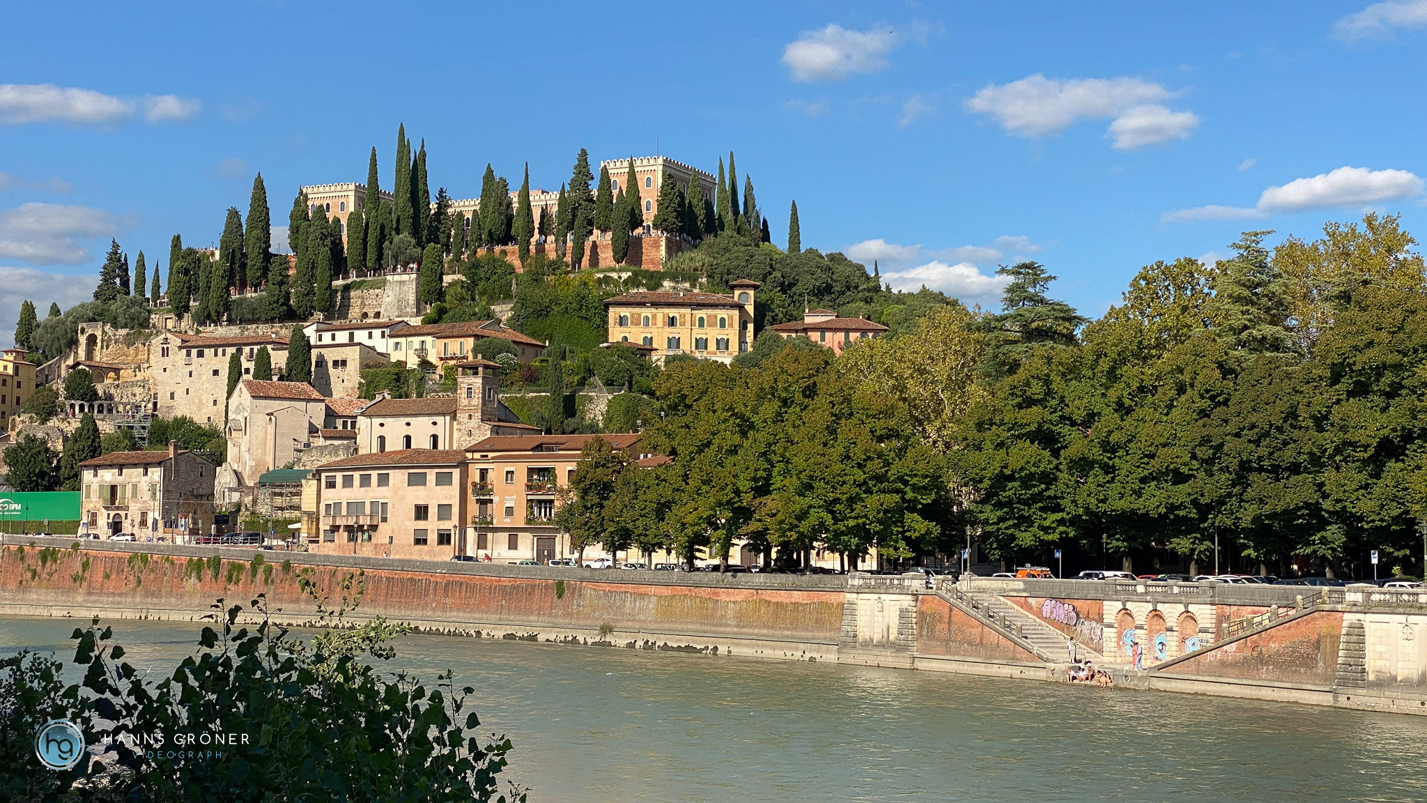 Vom Parkplatz an der Porta Palio aus machen wir einen schönen Spaziergang zunächst entlang der Etsch bis zum Castelvecchio und der mittelalterlichen Ponte Scaligero (Skaligerbrücke).