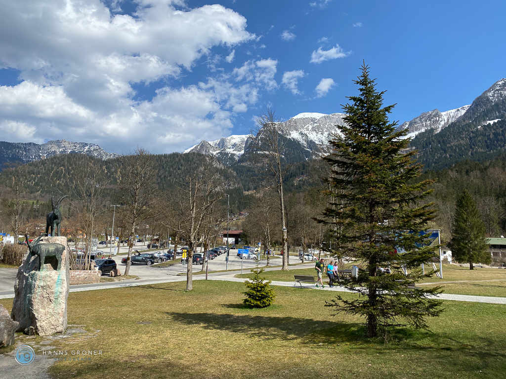 Wir parken auf dem großen Parkplatz unterhalb der Talstation der Jännerbahn. Bezahlt wird bequem per Parkster App. Vom Parkplatz aus erreicht man in wenigen Minuten den Schiffsanleger von Königssee.