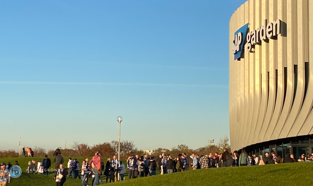 Kurz nach Stadionöffnung um 12:30 Uhr erreiche ich die Halle. Sonnenschein, kein Gedränge am Einlass. Es ist mein erster Besuch im SAP Garden. Natürlich bin ich neugierig und will mir die neue Spielstätte ein wenig ansehen und ein paar Fotos aus verschiedenen Perspektive machen…
