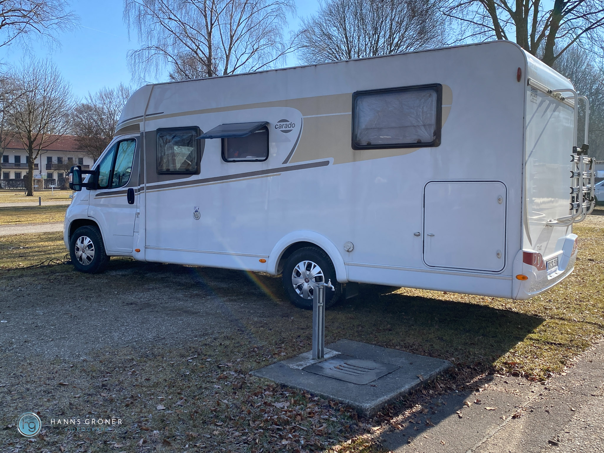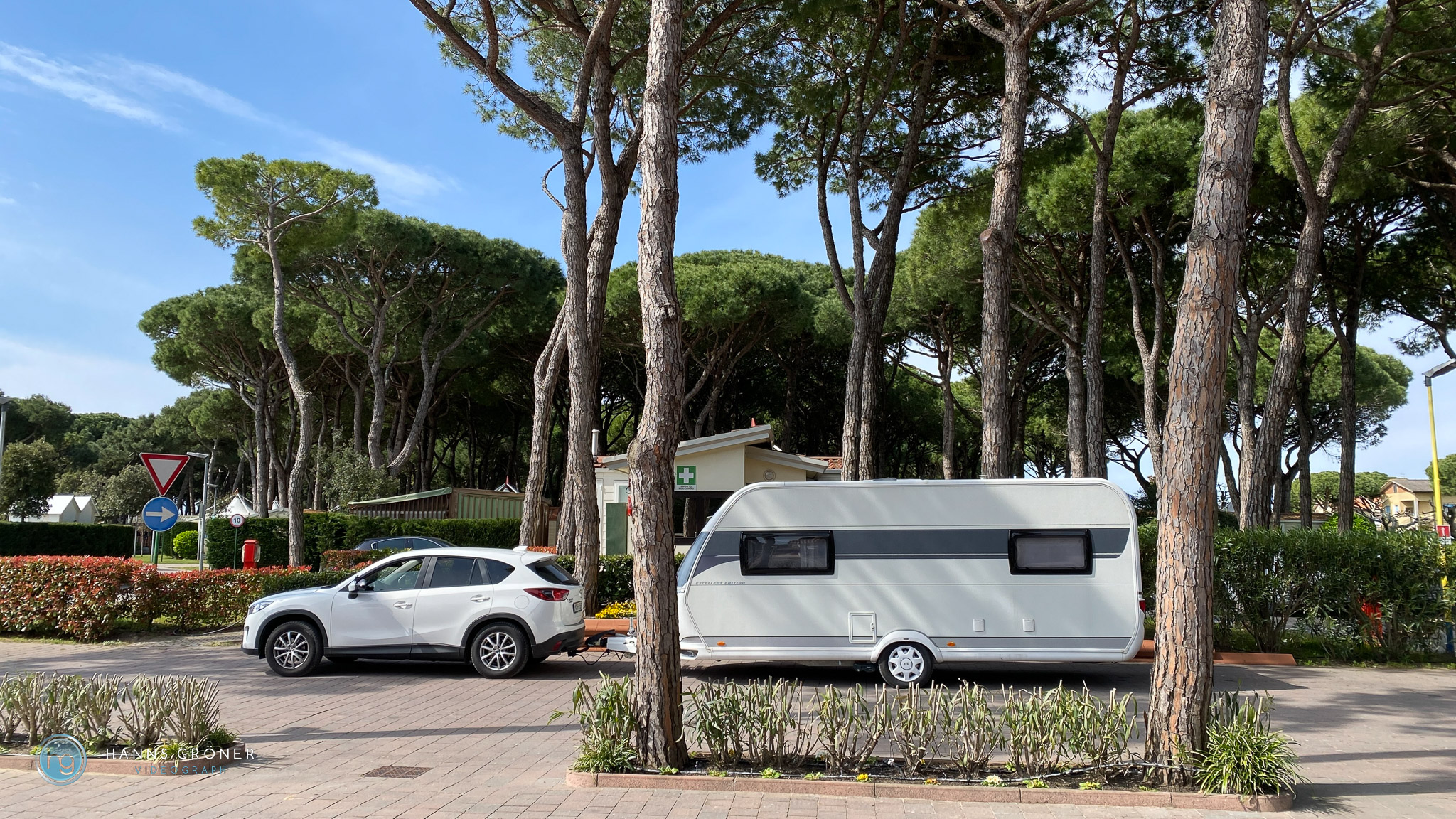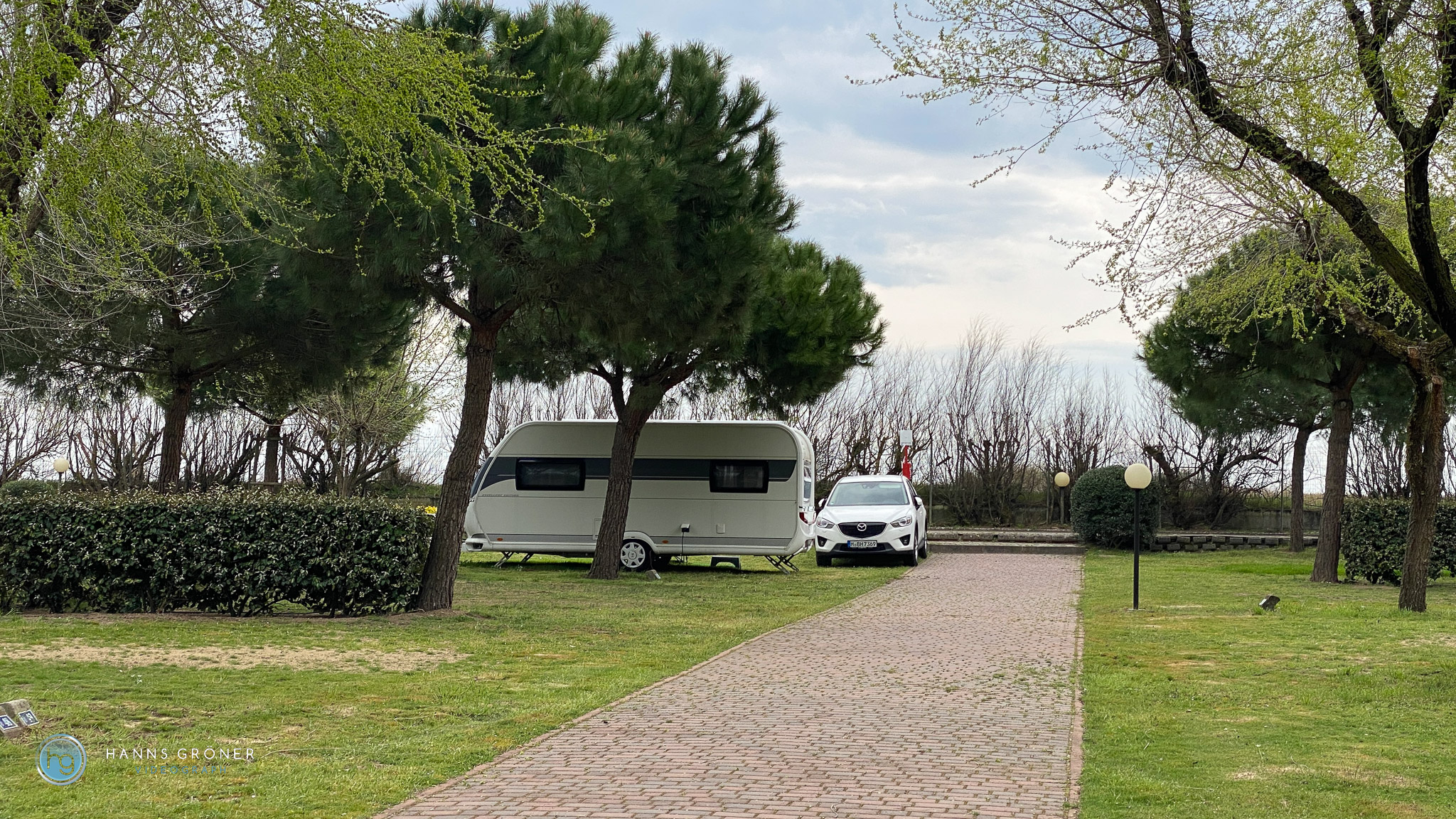 Meine erste Anlaufstation ist das Caravan Depot in Jesolo. Hier überwintert unser Hobby. Einen überdachten Platz haben wir leider nicht mehr bekommen; so muss er unter freiem Himmel stsehen. Auf Dauer vielleicht nicht die optimale Lösung – aber immerhin dürften die Wetterbedingungen hier weniger strapaziös für das Material sein als zu Hause.