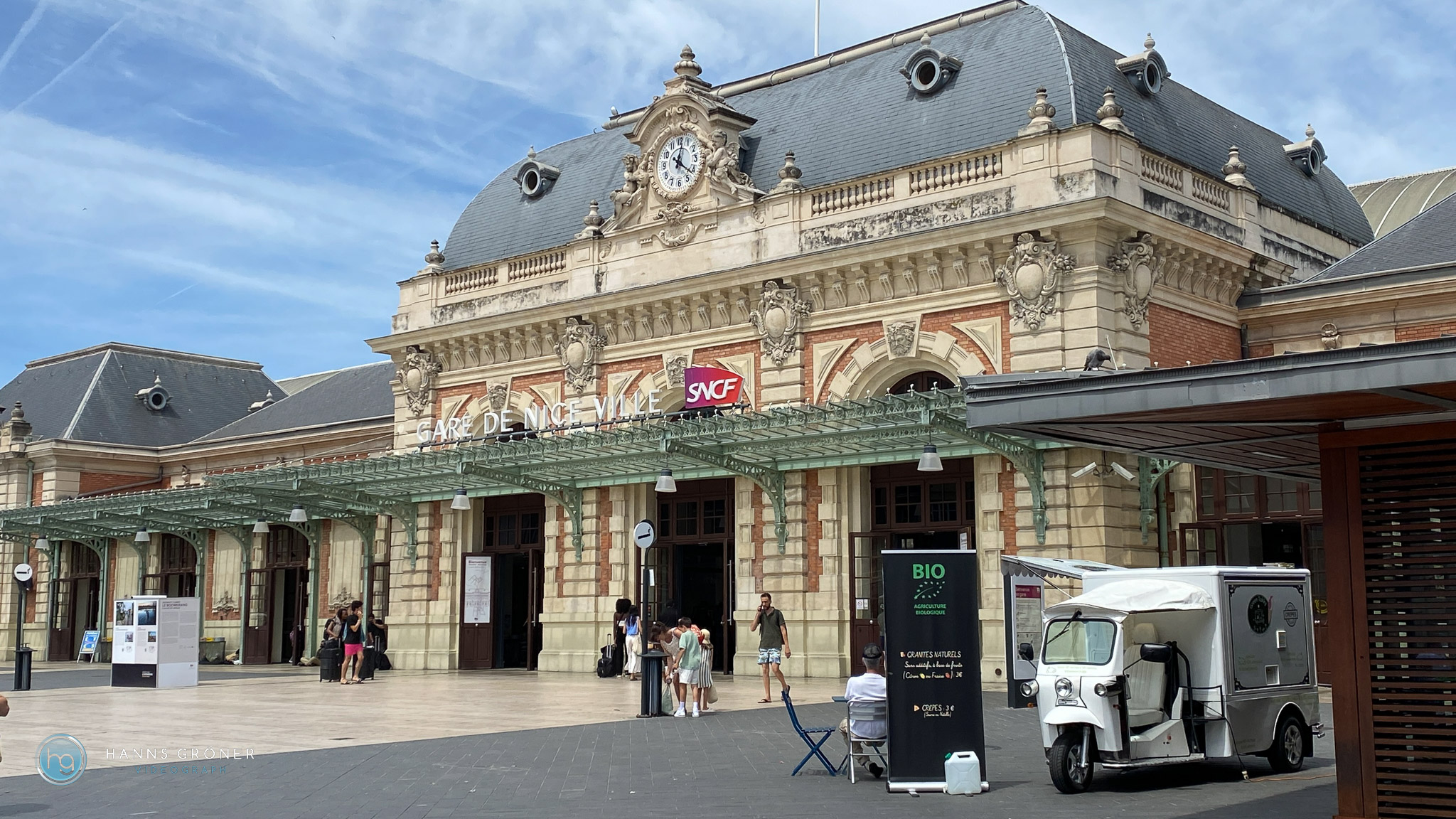 Von Sanremo fahren wir mit dem Bus nach Ventimiglia und von dort mit dem Zug nach Nizza. Nizza (etwa 350.000 Einwohner) lässt sich zwischen Bahnhof, Strand und Altstadt bequem zu Fuß erkunden. Das Meer, der Strand, die vielen Läden, Lokale, Bars und Cafes machen Lust auf einen längeren (weiteren) Aufenthalt.